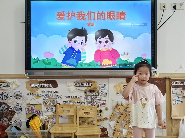 为了让护眼习惯融入日常,班级里还竞选了“护眼监督员”。当选的宝贝们每天会提醒小伙伴:“看书要离书本一尺远”“看电视不能太长时间”“用完玩具要洗手,不揉眼睛”。在监督员的带动下,孩子们互相监督、互相提醒,良好的用眼习惯慢慢养成。
