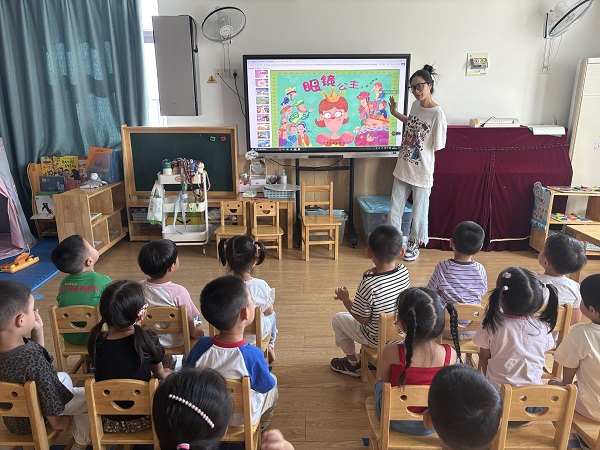 活动从绘本《眼睛公主》开始,老师声情并茂地讲述着眼睛公主因为不爱护眼睛,世界渐渐变得模糊的故事。当听到“眼睛公主看不清彩虹颜色”时,宝贝们纷纷皱起小眉头;而当公主学会保护眼睛,重新看到清晰世界时,大家又露出了开心的笑容。故事结束后,孩子们叽叽喳喳地说:“我要像眼睛公主一样爱护眼睛!”