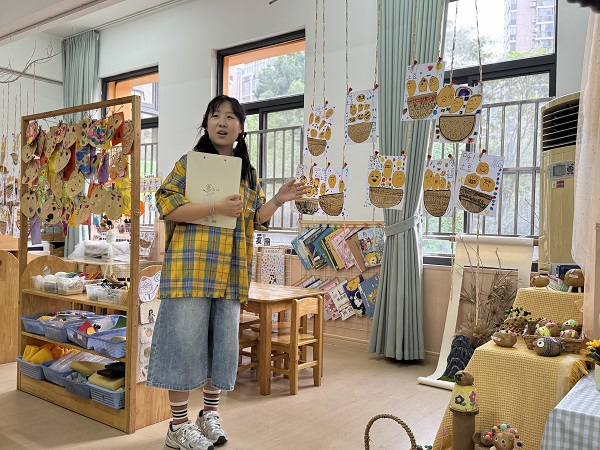 主题墙面作为课程的生发地与展示台,不再仅是装饰元素。教师通过主题墙、课程故事角等形式,动态呈现幼儿在发现问题、解决问题过程中的探索路径,使墙面成为“会说话、能互动”的思维表达空间。自然角与种植园地作为亲近自然的实践场,内容设置各具特色,工具便于取用,幼儿通过日常观察与管理参与,在亲近自然的过程中萌发关爱生命、尊重环境的情感。
