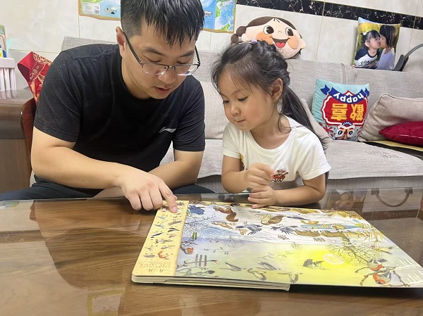 除了唱童谣,“亲子读绘本”也成了小班推普的暖心环节。家长们在家陪伴孩子翻看《小熊过桥》、《我爱上幼儿园》等绘本,家长轻声读着绘本内容,宝贝跟着小声重复,温馨的亲子互动里,满是清脆的普通话声。