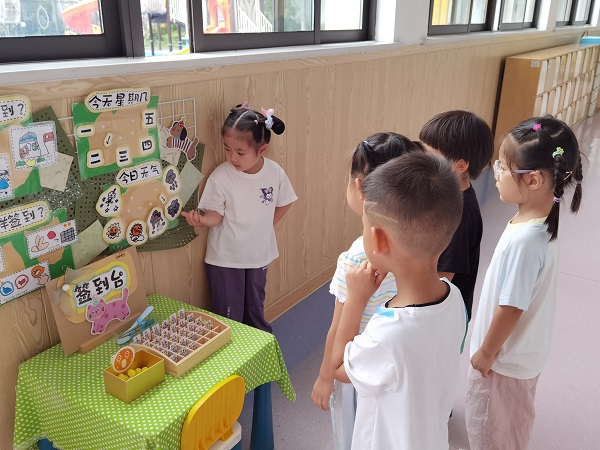 每天晨间的“天气播报员”活动,更是中班的“热门项目”。宝贝们拿着话筒自信地播报当天天气, 播报条理清晰、发音标准,有的结尾还不忘加一句 “祝大家在幼儿园玩得开心”,可爱的模样逗得小伙伴们哈哈大笑。